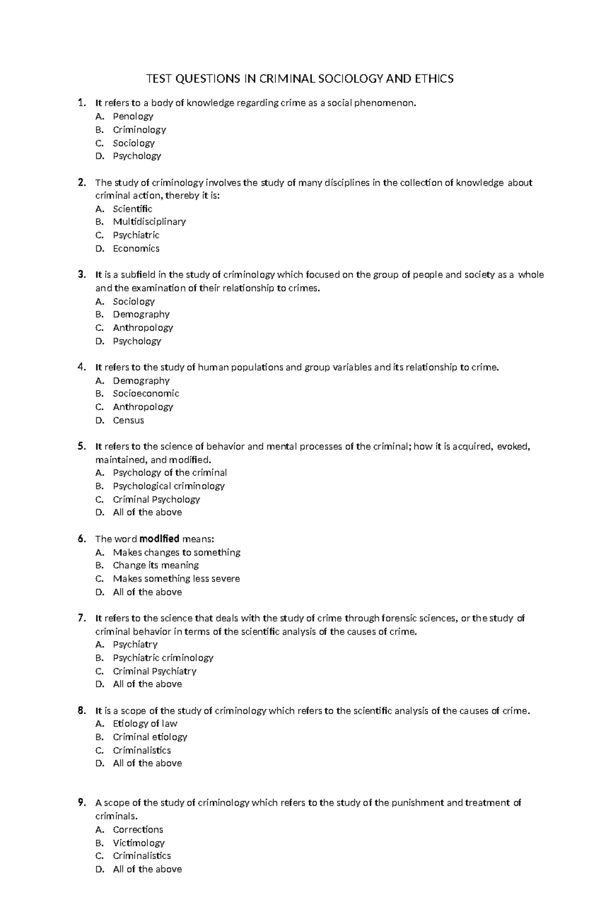 Test Questions In Criminal Sociology And Ethics Converted Inorganic Studocu